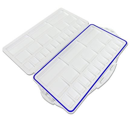 Esta paleta cuenta con 42 cavidades para poder mezclar tus colores, esta fabricada con una mezcla de plastico ABS, lo que otorgan gran resistencia al impacto y una superficie muy lisa fácil de limpiar. La paleta tiene un sello hermético para que la pintura dure húmeda por más tiempo, apropiada para utilizar en campo y estudio. Es ideal para Gouache y acuarela.