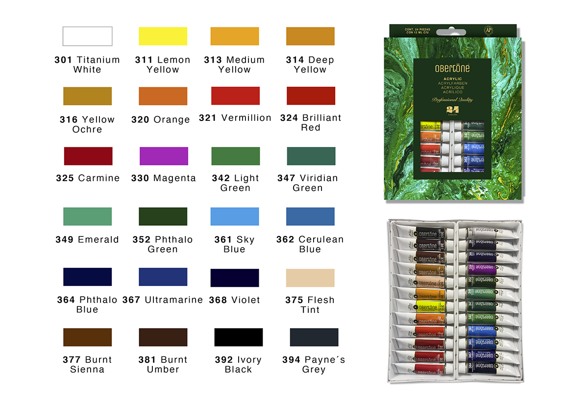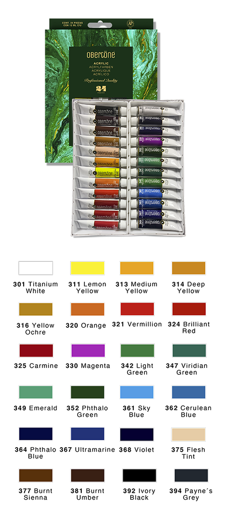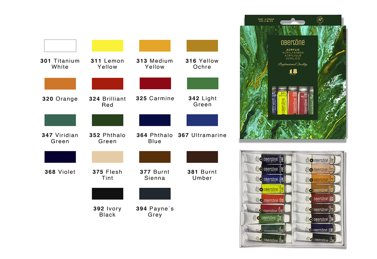 Set de pintura acrilica de colores diversos con calidad Profesional. Gracias a su estricto control de calidad, los acrilicos ofrecen colores vibrantes e intensos con un gran poder tintóreo, tienen una viscosidad media que se aplica con mucha tersura sobre el sustrato. Producto aprobado ante la ACMI (The Art and Creative materials Institute, Inc) como NO TÓXICO conforme al método ASTM D 4236. Excelente resistencia a la luz para proteger la durabilidad de tu obra.