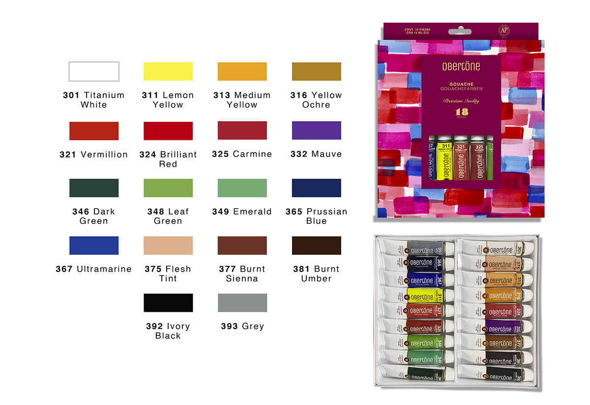 Set de pintura gouache de colores diversos con calidad Premium. Gracias a su estricto control de calidad, el gouache ofrece colores vibrantes e intensos con un gran poder tintóreo, tiene gran opacidad y dejan un acabado terso. Producto aprobado ante la ACMI (The Art and Creative materials Institute, Inc) como NO TÓXICO conforme al método ASTM D 4236. Excelente resistencia a la luz para proteger la durabilidad de tu obra.