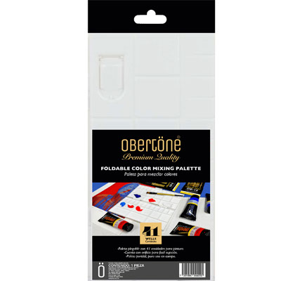 Esta paleta cuenta con 41 cavidades para poder mezclar tus colores, está fabricada con una mezcla de plástico ABS, lo que le otorga gran resistencia al impacto y una superficie muy lisa fácil de limpiar. Tiene orificio para poder sujetar con el pulgar mientras estas trabajando, su forma es muy ergonómica y ligera, apropiada para utilizar en campo. Es ideal para gouache y acuarela.